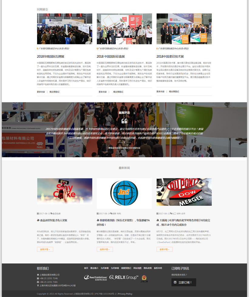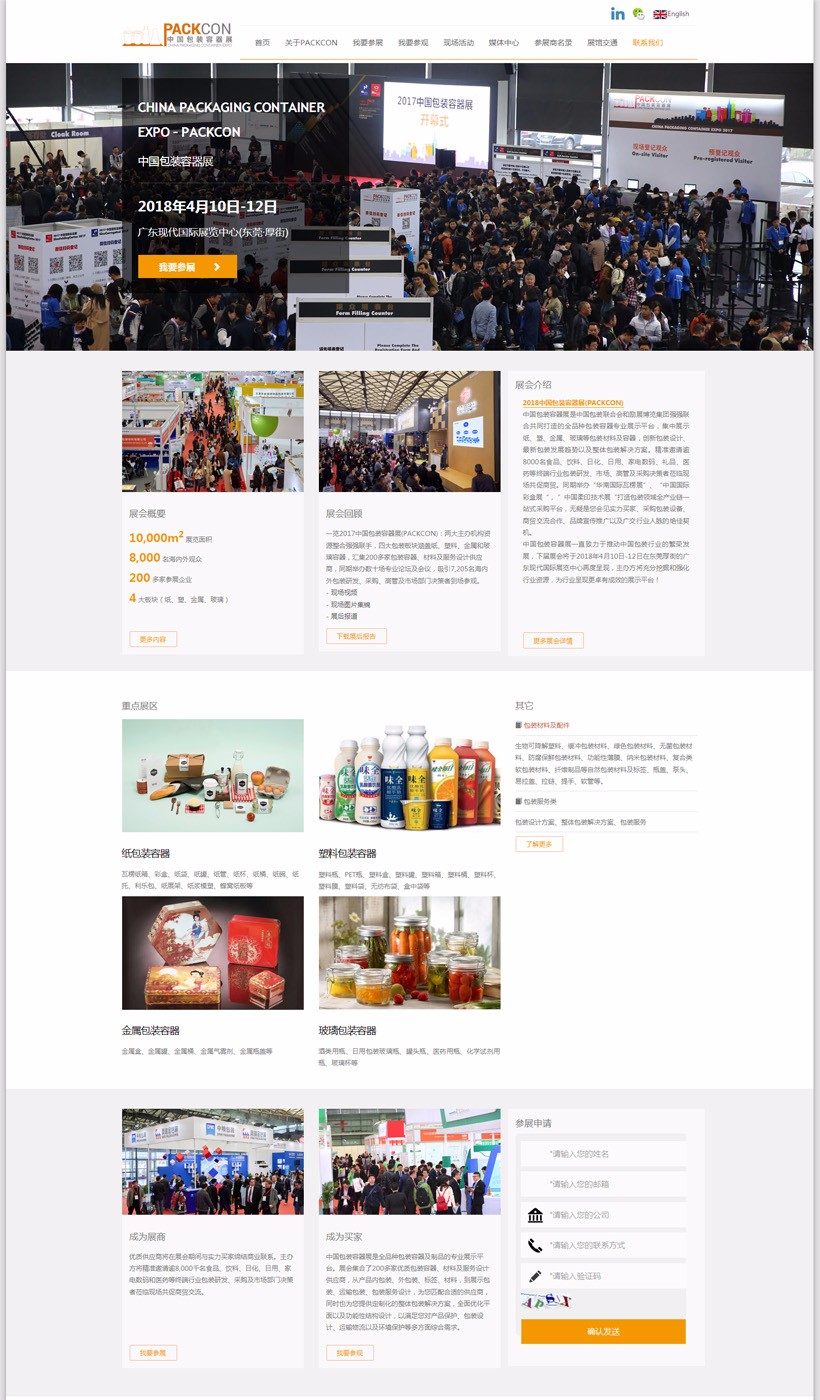 中国包装容器展是中国包装联合会和励展博览集团强强联合共同打造的全品种包装容器专业展示平台,该网站页面大气美观,技术感强,功能突出,罗列具体参展企业的信息,已经相关产品,集合预登记申请,参展申请,PC端,手机端,微信端全功能的特点。